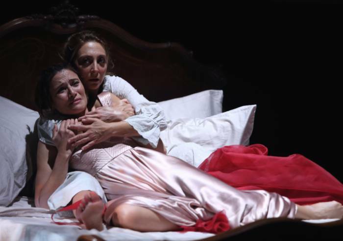 «Insieme ai miei collaboratori – prosegue la regista – abbiamo costruito un luogo scenico che rappresenta la mente di Cornelia, il diario su cui lei scrive, dove la chiusura o l’apertura dei muri è metafora di una condizione interna, della vita del cuore; mentre la relazione con l’esterno viene raccontata dalla luce e dal buio, dalle ore del giorno e dai suoni della campagna estiva, e dalla natura prepotente che le circonda. La messa in scena ha un segno classico, per omaggiare il grande teatro, e alle attrici viene chiesto di non uscire mai, di avere a che fare solo con il loro corpo. Gli unici oggetti con cui lavorare sono un letto, due sedie e gli abiti dai colori forti e simbolici che con loro danzano una partitura serrata di cambi e di trasformazioni».