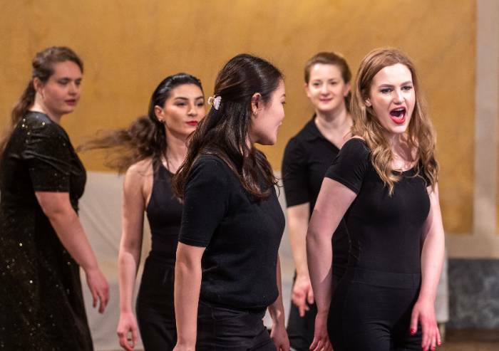 Il corpo degli interpreti come metafora della vita, delle relazioni e dell’anima, esaltato “al quadrato” da scenografie virtuali realizzate, seguendo il fil rouge drammaturgico dell’esplorazione dei cinque sensi, dai partecipanti al corso di comunicazione video, in una sinergica e appassionata sessione di lavoro congiunto, che è stata il risultato di una lunga riflessione sulla messinscena contemporanea dell’opera lirica tra registi ed interpreti.