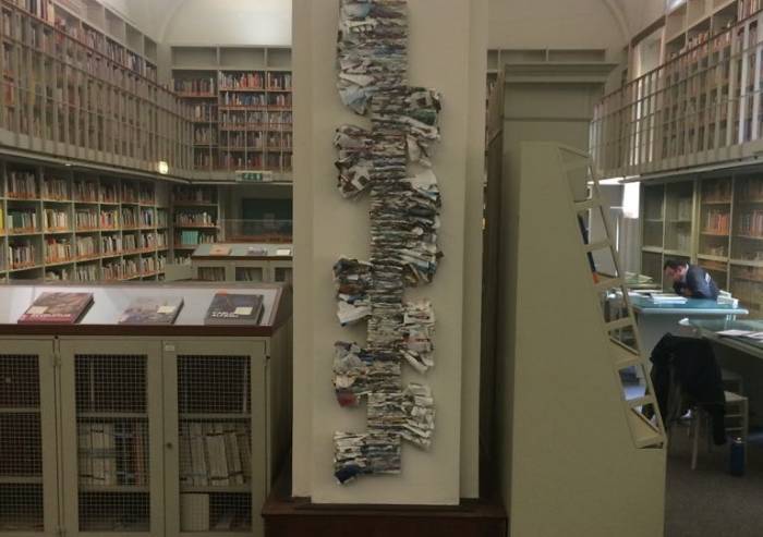 Maurizio Osti, artista visivo di matrice concettuale, attivo nella grafica editoriale, autore di libri d’artista e inventore della famiglia di caratteri digitali “Folk”, ha offerto in comodato d’uso gratuito per cinque anni al Comune una sua opera già esposta alla Poletti in occasione del Festivalfilosofia 2017: l’installazione artistica “Lybris (Animali)”, datata 2007, da collocare nella sala studio della biblioteca.