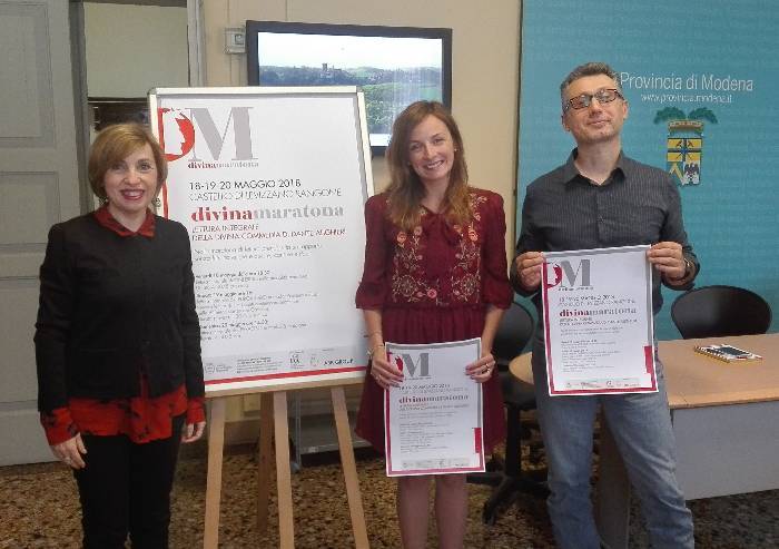 Fino a domenica sera continuerà nella sale del castello di Levizzano Rangone l'iniziativa organizzata dal Comune di Castelvetro 'La Divina Maratona', lettura integrale della Divina Commedia di Dante Alighieri. Decine di cittadini, anche studenti, si sono preparati nelle scorse settimane per leggere ognuno brani diversi e per dare vita insieme alla lettura integrale dell'opera. Nel video Giorgia Mezzacqui, assessore alla cultura del cultura del Comune di Castelvetro, ce la illustra.