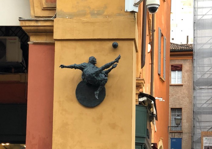 Eccola la scultura dell’artista modenese Wainer Vaccari al posto dello storico chiosco di giornali sotto i portici di corso Duomo. La scultura è stata scoperta oggi. La scultura ritrae l’immagine della rovesciata di Carlo Parola che compare sulle bustine e gli album delle figurine dei “Calciatori”. Fu proprio Vaccari, nel 1970 dipendente della Panini, a ridisegnarla e adattarla graficamente facendone il simbolo di quelle figurine che hanno accompagnato e coinvolto generazioni di bambini e ragazzi.