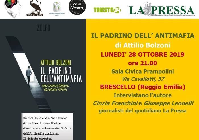 “Il Padrino dell’Antimafia” è questo il titolo del libro del noto giornalista di Repubblica Attilio Bolzoni che verrà presentato lunedì 28 ottobre alle 21 dall'autore stesso alla sala civica Prampolini di Brescello. Bolzoni, già intervenuto a Modena a giugno all'OvestLab, sarà ospite dell'associazione 100x100 in Movimento in un evento organizzato in collaborazione col quotidiano La Pressa e con altre associazioni e gruppi.