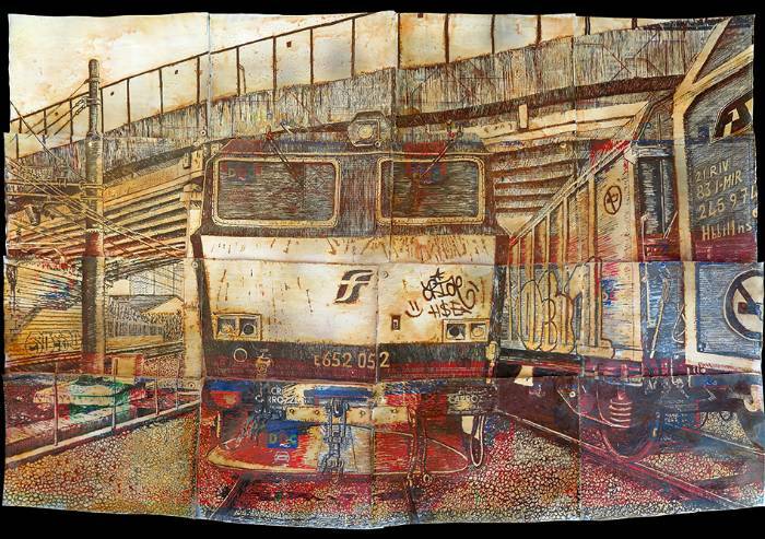 'Per Marc Augè, la ferrovia come le stazioni sono un non luogo, una terra di mezzo abitata solo transitoriamente. Per Albertism la ferrovia è una meta, è il luogo intimo che abita fin dall'adolescenza, che chiama casa. Per Albertism la ferrovia è un campo di ricerca, la fonte da cui attinge emozioni, visioni e materiali. Ogni elemento del suo lavoro è plasmato per restituire al di fuori le suggestioni di quell'ambiente, in forma di immagini e di installazioni. Vivere la ferrovia come luogo d'elezione significa far parte di una nicchia ristretta che sviluppa un'affezione per le superfici metalliche, per i sassi e per il rumore che producono sotto i passi, per il legno brunito dalla polvere e dal grasso, per il suono stridente dei treni che frenano e per i loro sbuffi improvvisi. I treni, mezzi imponenti che tutt'ora ci affascinano, sono il vettore della ricerca di Albertism, il motivo della sua presenza in ferrovia. Con il tempo il focus della sua indagine si è mosso dell'interazione con i treni, all'osservazione della ferrovia e di ciò che la compone: rotaie, traversine, segnali, luci' - scrve la curatrice Domiziana Febbi.