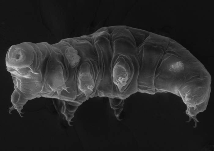 In ambienti estremi quali quelli antartici, i tardigradi sono assai diffusi ed abbondanti . Questi animali, detti anche orsetti d’acqua per il loro aspetto pacioso, sono microscopici (< 1 mm), hanno otto zampe con le quali si muovono su muschi e licheni di cui si nutrono attraverso due stiletti appuntiti che gli escono dalla bocca. I tardigradi riescono a vivere alle basse temperature dell’Antartide, che possono scendere fino a -60°C, grazie alla loro capacità di congelarsi o seccarsi insieme al substrato in cui vivono per poi tornare attivi quando le condizioni ambientali ritornano idonee. Quando sono secchi, il loro metabolismo è sospeso e in questo stato fisiologico, detto anidrobiotico, sono in grado di resistere a temperature più elevate di quella di ebollizione dell’acqua, a temperature vicine allo zero assoluto (-253°C), a forti radiazioni ionizzanti, al vuoto assoluto e a pressioni inimmaginabili.