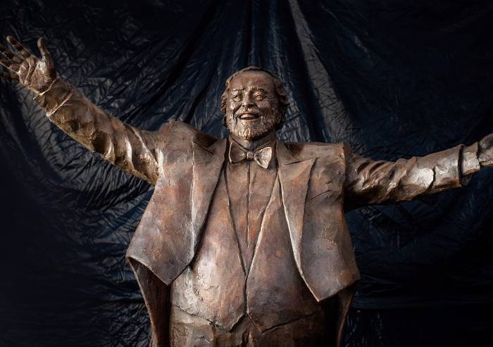 La statua in bronzo, lo ricordiamo, verrà collocata in via Goldoni a Modena, sotto il portico del Teatro Comunale. Fusa gratuitamente da tre fonderie artistiche aderenti all'associazione Artigianart-Pietrasanta (Da Prato, Mariani e Versiliese), è partita dalla città toscana questa mattina ed è giunta con un trasporto speciale a Modena, dove si provvederà a fissarla al basamento e a coprirla con un velo che sarà tolto all’inaugurazione, in programma oggi alle 28. Il trasporto e la collocazione in via Goldoni con la realizzazione del basamento, a carico del Comune di Modena, sono costati circa 20 mila euro. Alla cerimonia di oggi partecipano l’attuale commissario del Comune di Pietrasanta Giuseppe Priolo e l’ex sindaco Massimo Mallegni. La statua in bronzo raffigura Luciano Pavarotti in piedi a grandezza naturale, sorridente e a braccia aperte con il foulard nella mano sinistra nell’atteggiamento tipico di saluto al pubblico dopo le sue esibizioni (l’opera misura