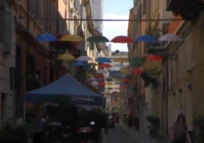 Tanti ombrelli colorati sospesi in aria a rendere caratteristica e certamente suggestiva via Cesare Battisti in centro a Modena. E’ questa l’idea nata grazie ai commercianti della zona e realizzata in collaborazione con Modenamoremio. Un’installazione che rimarrà per qualche tempo, si spera fino al grande concerto di Vasco Rossi, sulla scia di quanto già fatto in altre città europee ed italiane.
