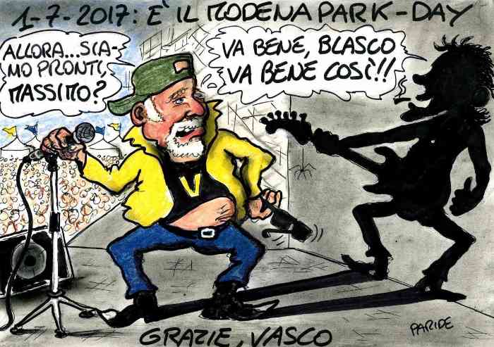 Un'alba fresca e senza nuvole ha salutato questa mattina i fan già presenti al Parco Ferrari a Modena in attesa di Vasco. Il concerto dei record inizierà questa sera col grande palco alto come un palazzo di 8 piani, con migliaia di agenti a controllare, con una città che non parla d'altro da mesi. Ma alla fine a cantare - fossero anche solo 100 persone presenti - è sempre Vasco. Il rocker che in ogni concerto ricorda l'amico scomparso di Zocca il 31 maggio 1999 per eroina: Massimo Riva, dedicandogli la dolcissima 'Canzone'. E con lui a ricordarlo 'Il Gallo', Claudio Golinelli lo storico bassista di Vasco.
