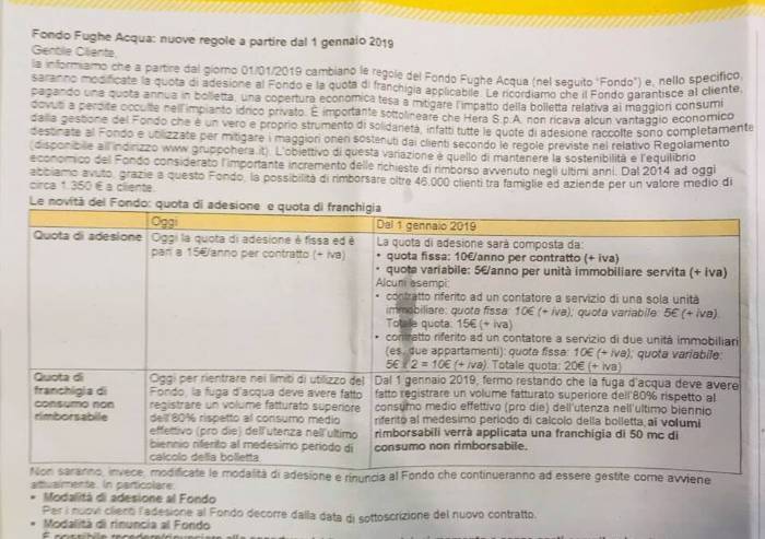 Hera fa presente che 'non ricava alcun vantaggio economico dalla gestione del Fondo' e che 'l'obiettivo di questa variazione è quella di mantenere la sotenibilità e l'equilibrio economico considerato l'incremento delle richieste di rimborso negli ultimi anni'.