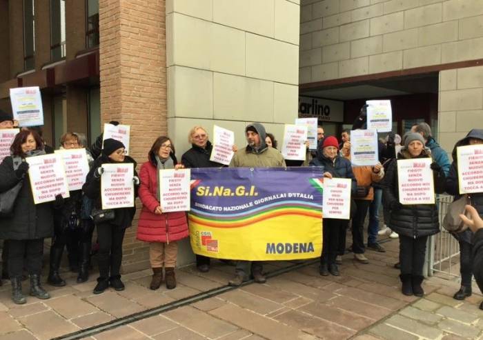A Modena, a sostegno della protesta, è stato organizzato anche un presidio davanti alla sede de Il Resto del Carlino, in quanto testata del presidente della Fieg Andrea Riffeser Monti.