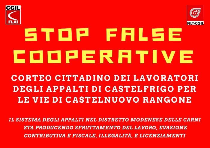 'Stop false coop'. La Cgil sfila a Castelnuovo contro caos carni