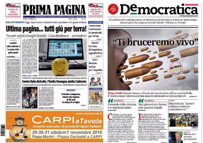 E' passato un anno dalla chiusura del quotidiano modenese Prima Pagina. Era il 31 ottobre 2016 quando, con un preavviso di una settimana, usciva l'ultimo numero del giornale edito per quasi 5 anni da Piacentini editore. Molte cose sono successe in questi 12 mesi. Alcuni dei redattori di Prima Pagina hanno fondato La Pressa e per questo, almeno da parte di chi scrive, va rinnovato il ringraziamento nei confronti di chi permise di costruire le radici (finanziandole con centinaia di migliaia di euro e di questo va dato atto) dalle quali è sbocciato questo quotidiano on line.