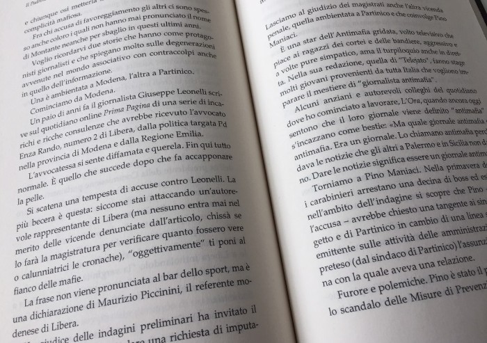 Ebbene, nel libro di Bolzoni al capitolo 'Una docile Antimafia', ci si sofferma in modo dettagliato sul ruolo di Libera di don Luigi Ciotti e viene citato anche il caso modenese che riguarda Prima Pagina, il giornale chiuso improvvisamente tre anni fa edito da Piacentini Editore.