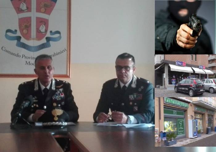 Due tunisini, regolari sul territorio nazionale, di 29 e 38 anni e due italiani di 50 e 55 anni. Tutti con precedenti per furti e rapine, tutti residenti a Castelvolturno, comune dal quale erano soliti partire periodicamente per compiere rapine al nord. In un mese e mezzo, da aprile e maggio scorsi, cinque commesse in provincia di Modena. Ora sono tutti in carcere. I Carabinieri de nucleo operativo radiomobile della compagnia di Sassuolo, guidati dal Comandante Giovanni Meo, si sono messi sulle loro tracce dopo il colpo, la mattina del 3 aprile scorso, al supemercato Caddy di Maranello. Con la modalità con cui avrebbero commesso gli altri colpi. Minacce alle commesse con l’uso di pistola, guanti e volto travisato da passamontagna, razzia dell’incasso e fuga a bordo di un auto presa a noleggio a Castelvolturno, posteggiata lontano dagli obiettivi, con ritorno immediato verso casa.