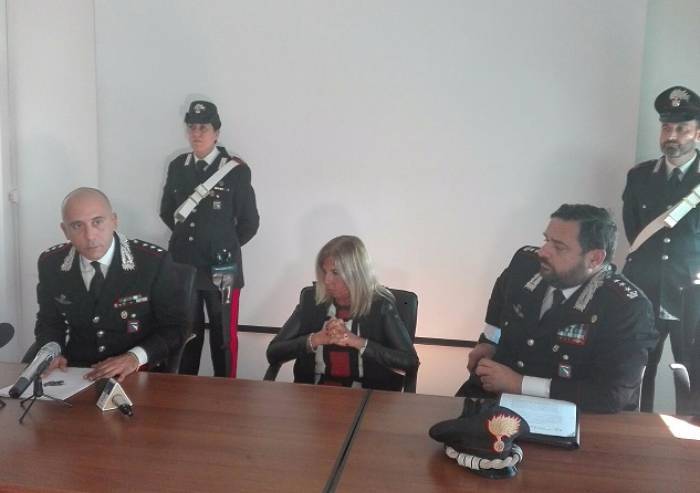 Nella foto, da sinistra, il Comandante dei Carabinieri di Carpi Iacovelli, il Procuratore capo della Repubblica Musti ed il Comandante provinciale dei Carabinieri di Modena Balboni nel corso della conferenza stampa presso il comando provinciale di Modena