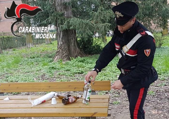 I Carabinieri intervenuti al parco di via Agnini, hanno multato loro ed il supermercato che aveva venduto illegalmente birra e vodka