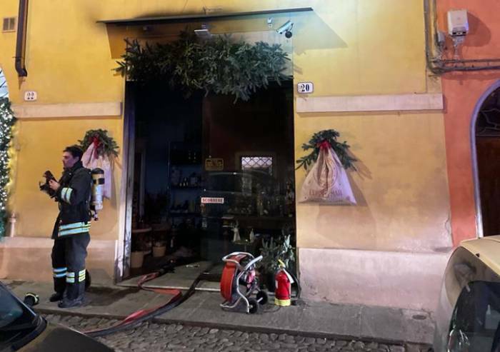 Modena, paura in centro: rogo in un negozio. Consigliere Giacobazzi interviene con estintori