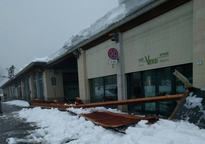 Pavullo, troppa neve, crolla cornicione alla Campanella