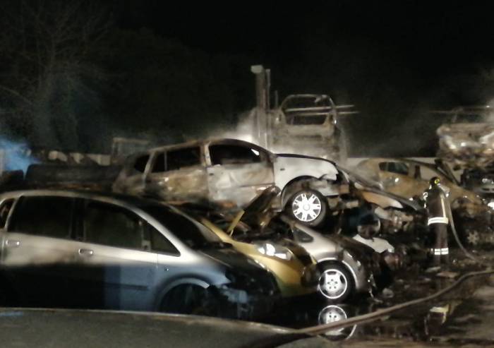 Incendio questa notte all'interno della autodemolizione Longagnani di via Giardini a Modena. Dalla mezzanotte impegnati 25 vigili del fuoco con 7 mezzi provenienti dalle sedi della provincia. Distrutte circa 30 carcasse di auto nel piazzale esterno. L'intervento massiccio dei vigili del fuoco ha impedito la propagazione dell'incendio alle tante auto depositate. Le cause sono in corso di accertamento in collaborazione con la Polizia di Stato.