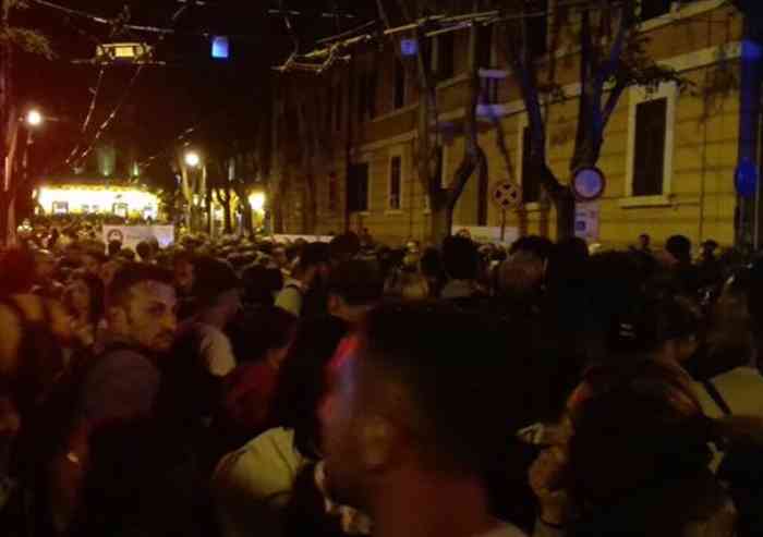 Si sapeva ed era previsto che il deflusso improvviso, verso la stazione delle FS, di buona parte del popolo del Modena Park che aveva raggiunto la città in treno, avrebbe poturo creare problemi. E così è stato. Il passaggio per tutta la notte di treni speciali con cadenza di 15 minuti, sia direzione Bologna che direzione Reggio Emilia, non è bastato ad assorbire l'enorme flusso di persone. A decine di migliaia quelle che dopo essere usciti dal Parco Ferrari si sono diretti verso la stazione. Migliaia di persone, che aumentavano di minuto in minuto e che giunti all'altezza di via Galvani hanno incontrato il cordone di Polizia, creato per regolare l'afflusso alla stazione. Al ritmo di 600 persone circa ogni 15 minuti. Pochi per garantire un rapido sblocco della situazione. E' da poco passata l'una quando la situazione rischia di degenerare. La folla aumenta e preme sul cordono di Polizia. Si levano urla, alcune ragazze si sentono male e vengono portate fuori dalla mischia. Dal megafono il dirigente della Polizia, con agenti schierati in tenuta anti-sommossa, spiega le ragioni di sicurezza che motivano il blocco degli accessi. La folla però continua a premere e ad aumentare. Sono decine di migliaia.