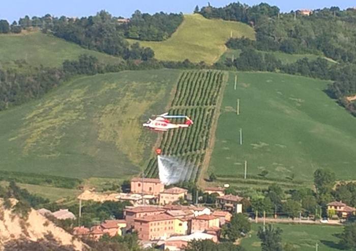 A mettere fino alla paura e alla devastazione che aveva riguardato migliaia di metri quadrati di vegetazione nei pressi della salse di Nirano, nel Comune di Fiorano, l'intervento dell'elicottero dei Vigili del fuoco. Dal primo pomeriggio un'ampia area di vegetazione spontanea nelle immediate vicinanzanze del sito naturalistico era stata avvolta dalle fiamme. Le operazioni di spegnimento del fronte di fuoco sono state complicatedal terreno con varie asperità ed irregolare, praticamente impossibile da percorrere con i normali mezzi di terra. Da qui la richiesta dell'intervento del mezzo aereo. In questo l'elicottero AB412 ' Drago 60' del Reparto volo Vigili del Fuoco Emilia Romagna di stanza a Bologna. Con diversi lanci di acqua ha bloccato il propagarsi delle fiamme, mentre le squadre a terra provvedevano ad attaccare il fronte del fuoco a valle del calanco e a proteggere alcuna abitazioni vicine al rogo. Sul posto hanno operato in tutto 12 Vigili del Fuoco con 5 mezzi.