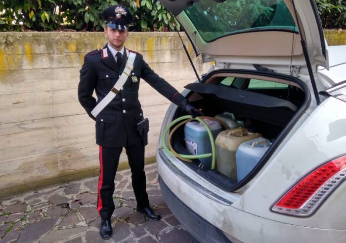 I Carabinieri si sono appostati e alle ore 23 lo hanno colto in flagranza di reato mentre rubava carburante di pulmann posteggiati nella rimessa della ditta per la quale lavorava travasandoli dai serbatoi ad alcune taniche che caricava in auto e faceva sparire. Si tratta di un uomo italiano, di 48 anni, nato in Svizzera. Su di lui pesavano alcuni sospetti a seguito di numerosi furti di carburante avvenuti nella stessa autorimessa. Da qui l'appostamento che ha consentito di coglierlo mentre fisicamente caricava sulla propria autovettura 4 taniche contententi circa 100 litri di gasolio