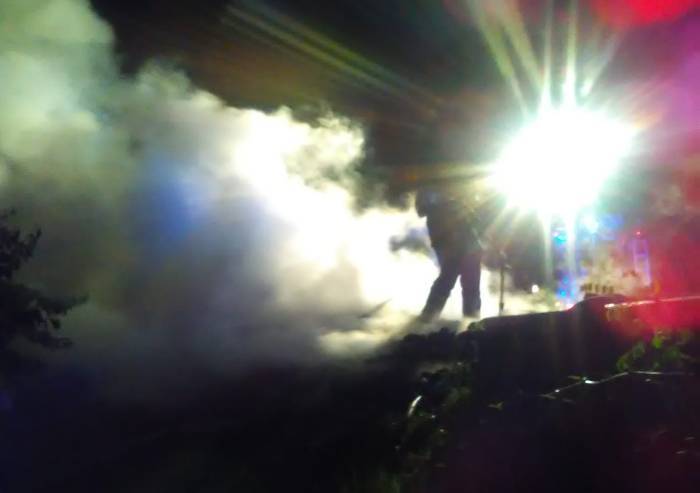 Indagini in corso sull'incendio, alle ore 23, di quintali di materiale a Monteombraro