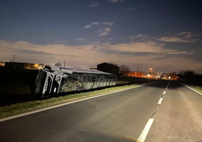 L'incidente è avvenuto prima di Natale e da settimane il mezzo è capovolto nel fossato sul lato della strada