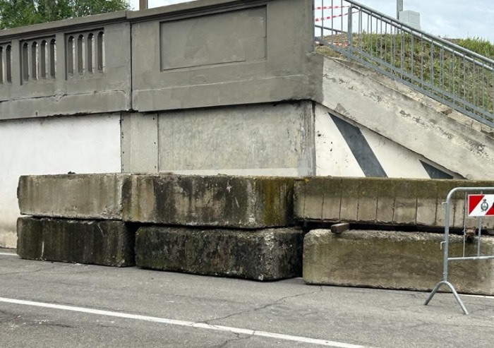 In accordo con AIPO, la Provincia e la Protezione Civile sono stati installati dei massi sulla parete verticale del Ponte