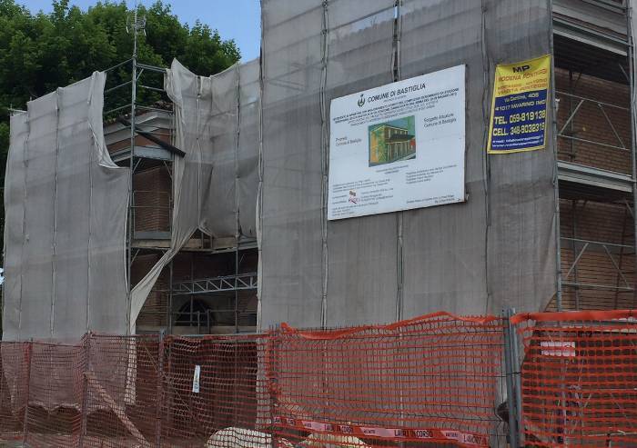 Provvidenziale (ovviamente si fa per dire) è stato il sisma del 2012. Perchè grazie a quella terribile tragedia al Comune di Bastiglia è stata assegnata la ripartizione dell'indennizzo assicurativo post-sisma (459.625 euro complessivi) e così sono partiti i lavori di intervento di ripristino con miglioramento sismico dell'edificio danneggiato sì dal sisma del 2012, ma da anni fatiscente, in stato di totale incuria e abbandono.
