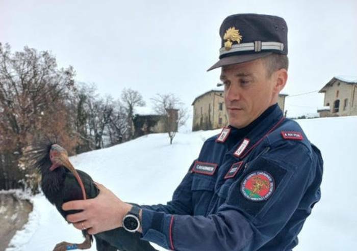 Ibis eremita a rischio nella neve: salvato dai Carabinieri