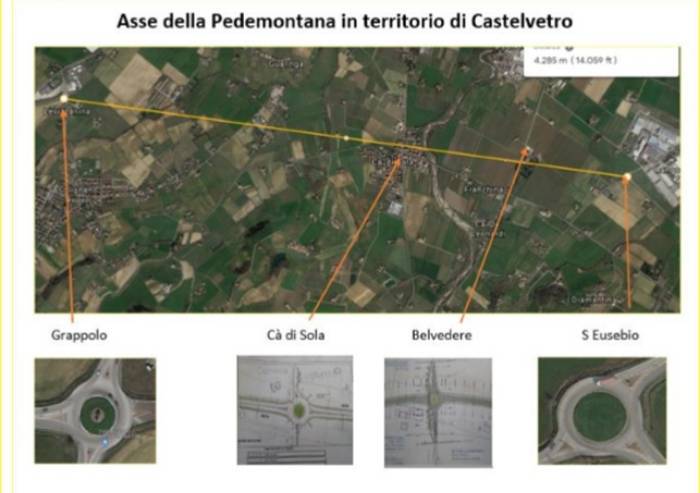 Siamo probabilmente certi, che gli ingegneri che hanno progettato l’asse viario denominato Pedemontana, nel passaggio del territorio di Castelvetro, avranno tenuto conto delle peculiarità paesaggistiche, al fine di non turbare l’occhio con ponti o sovrappassi, i quali potrebbero avere avuto un impatto sgradevole per il camionista o il residente, stessa cosa hanno pensato i tre enti, Provincia , Regione, e Comune soprattutto, avendo voluto a tutti i costi modificare un progetto datato 2002, inserendo la quarta rotonda su via Belvedere (come disse l’allora sindaco Montanari nel 2010 :asfaltata da poco).
