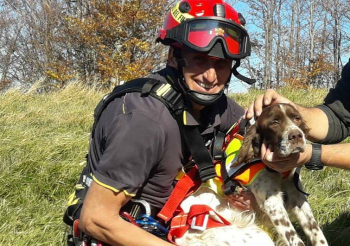Montecreto, cane nel dirupo: salvato dall'elicottero vigili del fuoco