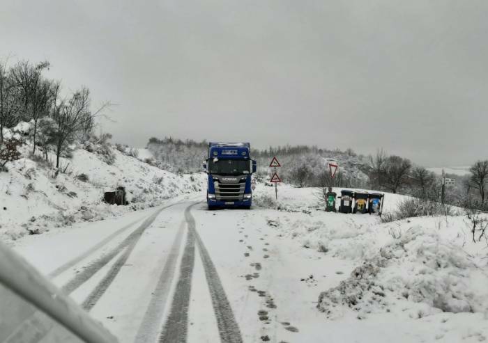 I tecnici della Provincia sono impegnati da questa mattina per assicurare la piena percorribilità delle strade della rete viaria provinciale, dove nel corso della giornata si sono verificati disagi a dovuto a mezzi pesanti in difficoltà sprovvisti delle dotazioni invernali obbligatorie, in particolare lungo la strada provinciale 18 (foto) e 21, nella zona di Serramazzoni e Puianello.