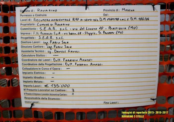 2Sempre nel 2015, il Cap Modena bandiva una gara per quella che veniva definita una riqualificazione tramite attività di recupero ambientale, cioè terre o rocce da scavo, di fatto rifiuto certificato, proveniente da luoghi interessati da lavori di scavo o perforazione, utilizzate per alzare il dislivello in Abrenunzio.