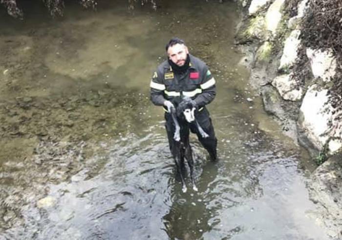 Sassuolo, cane cade nel torrente: salvato dai vigili del fuoco