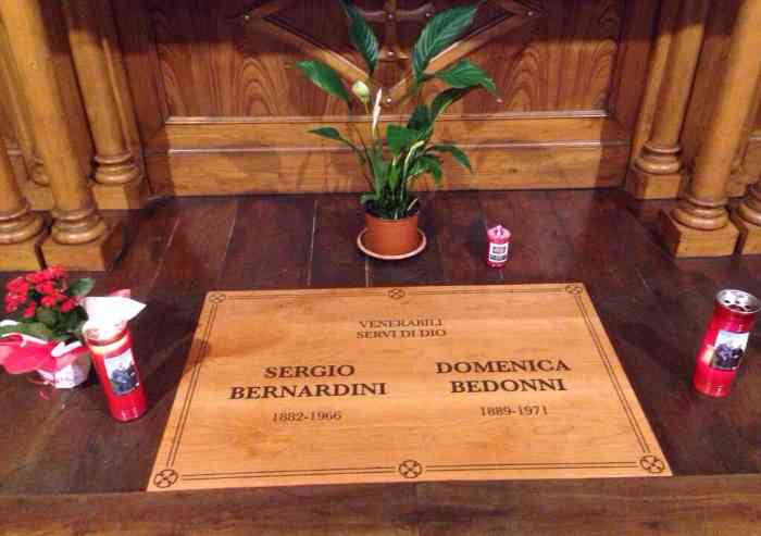 La funzione è stata presieduta dal parroco don Roberto Montecchi e concelebrata i figli dei venerabili Padre Sebastiano e Monsignor Germano. Presente il comitato promotore della causa di beatificazione e una rappresentanza dell'associazione nazionale Alpini di cui Sergio Parte. Presente anche la fraternità O.F.S. di Pavullo Sergio Bernardini e Domenica Bedonni furono contadini nelle montagne di Pavullo nel Frignano. Sergio, rimasto vedovo dopo aver perso nel giro di quattro anni la moglie e i figli piccoli, si unì in seconde nozze con Domenica, che condivideva il suo ideale: formare una famiglia molto religiosa, con tanti figli da educare nella speranza che qualcuno si consacrasse al Signore. Dei dieci figli, infatti, otto presero quella strada: cinque scelsero la congregazione delle Figlie di San Paolo; una fu dapprima Orsolina secolare, poi suora Francescana Ancella del Buon Pastore; le altre due femmine si sposarono e aderirono, come i genitori, al Terz’Ordine di San Francesco. I due maschi, invece, entrarono tra i Cappuccini. Sia ai funerali di Sergio sia a quelli di Domenica presenziò una folla enorme di fedeli e di sacerdoti. La loro causa di beatificazione congiunta si è svolta nella diocesi di Modena-Nonantola dal 20 maggio 2006 al 18 maggio 2008. Con decreto datato 5 maggio 2015 Papa Francesco ho riconosciuto l’eroicità delle loro virtù cristiane, vissute nello stato coniugale, dichiarandoli Venerabili. Dopo i Beati Luigi e Maria Beltrame Quattrocchi e i Santi Louis e Zélie Martin, sono la terza coppia nella storia della Chiesa a ricevere questo titolo.