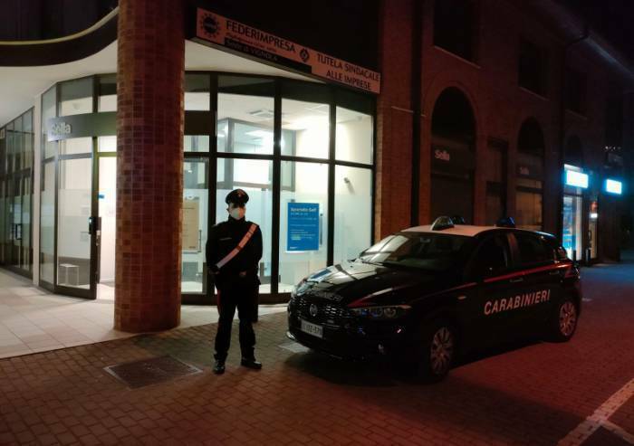Poco dopo la mezzanotte, a Vignola due persone vestite di scuro e completamente travisate hanno fatto accesso, utilizzando mazza e piccone, al locale bancomat della locale filiale di banca Sella, tentando di forzare il dispositivo ATM. Anche in questo caso, così come è successo la notte tra mercoledì e giovedì a Sassuolo, in u'altra filiale di Banca Sella, gli avanzati sistemi tecnologici di allarme e di videoripresa istallati in tutte le filiali della Banca, attivi hx24, hanno rilevato immediatamente l’anomalia, consentendo di attivare in tempo i sistemi di protezione e allarme e di allertare direttamente la Centrale Operativa dei Carabinieri. La collaborazione dell’Arma con la Sicurezza dell’Istituto bancario ha consentito alle pattuglie di giungere sul posto in brevissimo tempo, guadagnando minuti preziosi e, anche in questo caso, analogamente a quanto accaduto la notte precedente per la filiale di Sassuolo, costringendo i malintenzionati alla fuga.