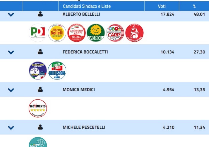 La situazione politica uscita al primo turno elettorale a Carpi