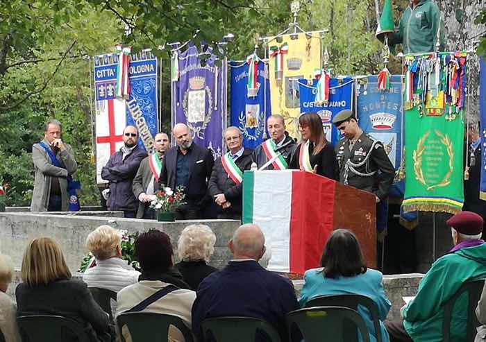 Il presidente della Regione alla cerimonia per ricordare le sessanta vittime fra partigiani e civili vittime dell'eccidio portato a termine dalle SS nel settembre del 1944, con la sindaca di Gaggio Montano, Maria Elisabetta Tanari, Francesco Berti Arnoaldi, per i partigiani di “Giustizia e Libertà”, che in queste zone combatterono nella Resistenza, Giancarla Codrignani e Anna Cocchi.