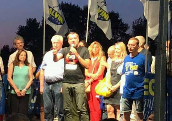 Dopo la tappa di Ferrara, ad aspettarlo al Secchia Fest, la seconda festa leghista di San Michele, località di una Sassuolo ora a guida carroccio, ci sono un migliaio di persone. Il leader del carroccio e ministro dell'Interno, in maglietta e pantaloni sportivi, saluta sul palco il neo sindaco Francesco Menani, complimentandosi nuovamente per la vittoria e augurandogli buon lavoro, 'un grande lavoro - afferma - perchè quando si aprono certi cassetti, chissà cosa ci si trova dentro'. Sul palco anche gli altri due sindaci di centro destra, quello di Finale Emilia, Sandro Palazzi, ed il neo sindaco di Mirandola Alberto Greco. Per Salvini è l'ultima tappa del tour emiliano che lo ha visto anche a a Ferrara dove Salvini, oltre ad invitare il Presidente della Regione a fissare le elezioni a novembre, ha lanciato di fatto la candidatura di Lucia Bergonzoni