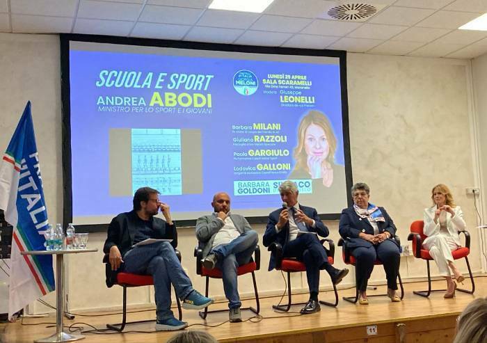 Il tour del Ministro è poi proseguito a La Fratellanza di Modena, anche in omaggio ai 150 dalla fondazione della società, poi appuntamento con diversi rappresentanti di diverse associazioni sportive sassolesi allo Sporting Club e, in chiusura della giornata, all'appuntamento promosso da Fratelli d'Italia a Maranello, a sostegno della candidata sindaco Barbara Goldoni, con i campioni dello sci Giuliano Razzoli e Barbara Milani. 'Sono qui per ascoltare il territorio e le sue realtà. C'è tanto da fare. Siamo uno dei paesi d'Europa a più alto tasso di sedentarietà, nel post covid abbiamo tanti giovani che non fanno sport, adulti che non fanno movimento e poche strutture a disposizione o non efficienti' - ha affermato il ministro. Per lui, nell'appuntamento moderato dal direttore de La Pressa Giuseppe Leonelli, diverse le domande arrivate da associazioni sportive di base dal territorio.