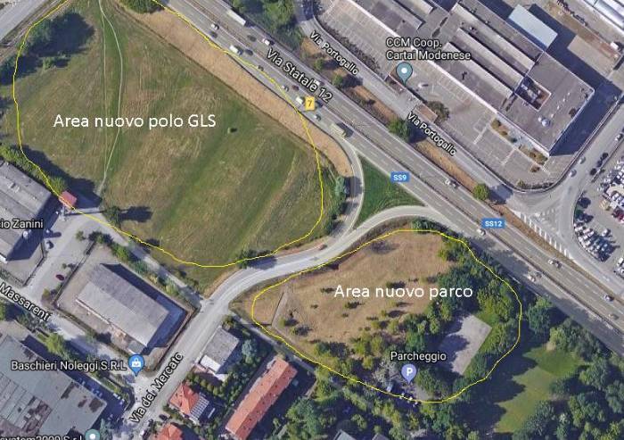 In un lato sarà quindi realizzato un parco attrezzato, a seguito della permuta con il privato d un’area che doveva ospitare una palazzina con uffici. Dall’altro, a pochi metri, sarà realizzato il capannone industriale sede del un polo logistico GLS dove si muoveranno decine di camion ogni giorno. Lo ha confermato l’Assessore ai lavori pubblici del Comune di Modena Gabriele Giacobazzi. Stiamo parlando della lunga ed unica fascia verde rimasta a ridosso della tangenziale nord, tagliata dall’innesto di via del mercato sulla tangenziale. A destra, verso viale Gramsci l’area, già verde, verrà attrezzata e riqualificata con alberi o con strutture che, visto che nulla è ancora deciso, potrebbero sorgere dalla proposte dei cittadini.