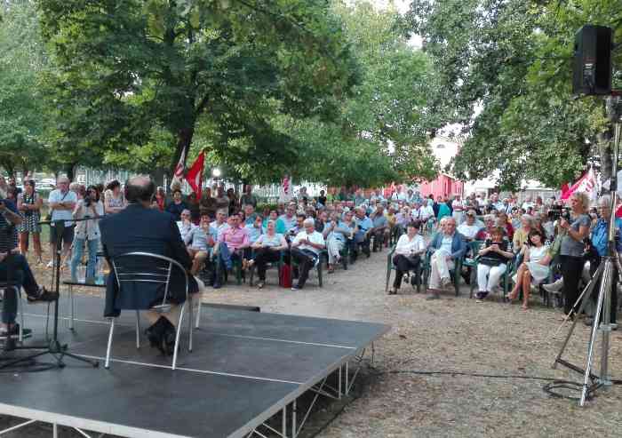 In un ora circa di intervento di fronte ad una platea di circa 250 persone (prevalentemente anziane), Bersani tocca in parte l'agenda politica dell'autunno: 'Diamo atto al governo Gentiloni di un profilo più alto e attento, anche se ha giocato scherzetti come quello sui Voucher o sulle banche. Avevamo presentato due emendamenti per una maggiore tutela dei risparmiatori. Tutti d'accordo, poi in una notte è sparito tutto. E oggi c'è gente libera di circolare lungo via Montenapolene che ha rovinato migliaia di risparmiatori.