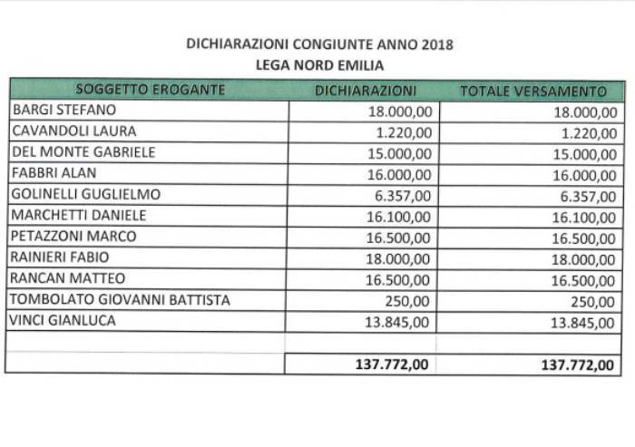Nella foto in alto lo schema dunque di quanto restituito a livello regionale, cifre alle quali si sommano le restituzioni nazionali per coloro che lo scorso anno sono passati dalla Regione al Parlamento (Golinelli ad esempio ha restituito al nazionale altri 18.500 euro, Vinci altri 32mila euro, Tombolato 24mila euro...).