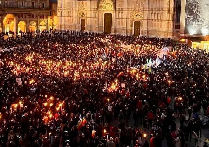 Bologna, in migliaia in piazza contro la guerra: il Covid è forse sparito?