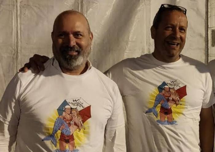A indossare le magliette confezionate per l'occasione, 'griffate' dalla stampa di un bagnino che salva una sirena tenendola in braccio, hanno pensato tra i politici Pd il governatore Stefano Bonaccini, il suo assessore al Turismo Andrea Corsini, il sindaco di Ravenna Andrea De Pascale, il deputato dello stesso territorio Alberto Pagani.