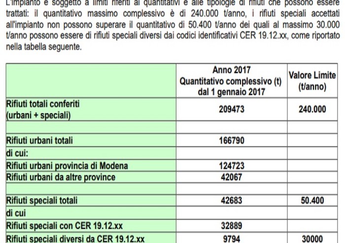 Senza entrare nel merito dell'incapacità di decisori politici di rispettare, a distanza di pochi mesi ciò che loro stessi si erano impegnati a garantire. E con uno scarto non irrisorio, bensi sostanziale. Perché prevedere ad ottobre 43mila tonnellate di rifiuti da conferire nell'inceneritore di Modena ed accorgersi a fine anno che le tonnellate di rifiuti speciali sono state 61mila, allora vuol dire che qualcosa non va.