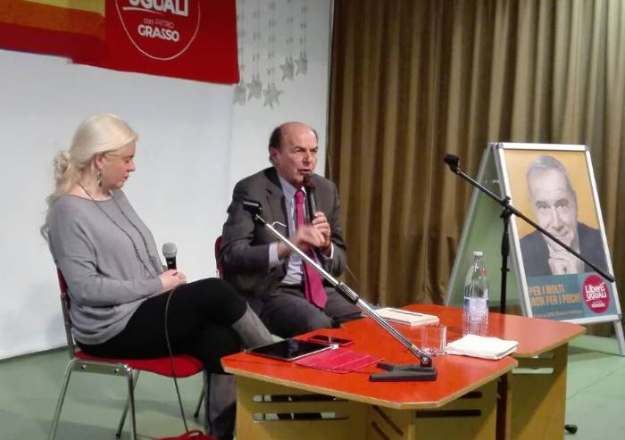 Perché così noi non ci siamo'. Riferendosi all'alleanza Bonino-Tabacci: 'Non si conoscono neppure, è come vedere due persone che sotto la pioggia prendono lo stesso taxi per andare in stazione. Pur non conoscendosi''Per quel che riguarda noi, a proposito di questa storia che non si sta sul territorio' - ha proseguito Bersani - 'avremo il 70% dei capilista che saranno del territorio. Certo, noi siamo freschi freschi e non abbiamo ancora un ponte di comando, siamo piu' di una lista e meno di un partito, dovranno perdonarci qualche imperfezione. Pero' bisogna anche dire che una legge cosi', solo uno che e' andato avanti troppo col Lambrusco poteva immaginarsela, francamente. Bisognera' capire anche chi gliel'ha messa in testa questa roba, che e' un finto proporzionale insieme al maggioritario'. Da qui l'appello al voto. 'C'è un simbolo dove c'è scritto Liberi e Uguali e in una legge elettorale che è per due terzi è proporzionale, votate dove vi porta il cuore'
