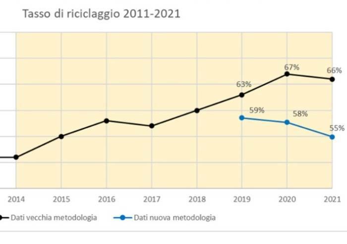 Bargi, nel suo atto ispettivo, denuncia come “l’approvazione del nuovo Piano Regionale dei Rifiuti e Bonifica Siti Contaminati (PRRB) 2022-2027 ha determinato un nuovo assetto nella pianificazione del settore dei rifiuti e la relazione sulla sua applicazione fa emergere che negli anni 2019 - 2021, dopo l’introduzione del nuovo sistema di calcolo, il valore del tasso di riciclaggio ha registrato un costante calo rispetto al passato, fermandosi al 55%”.