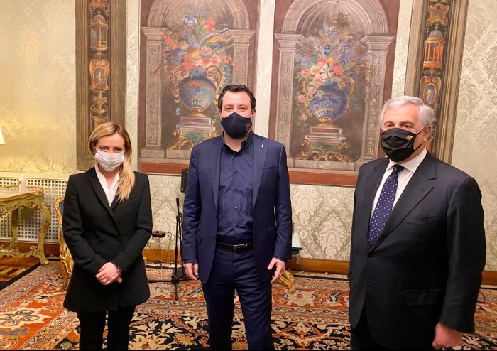 Il commissarimento di fatto che si verrebbe a creare per l'Italia con la promozione di Draghi a presidente del Consiglio rischia di spaccare il centrodestra. L'opposizione spazia infatti tra la posizione ‘di ascolto’ di Forza Italia e il ‘niet’ di Fratelli D’Italia. In mezzo, Matteo Salvini prova a tenere unita la coalizione aprendo alla possibilità di ascoltare il premier incaricato con una condizione: si fissi subito la data delle elezioni.